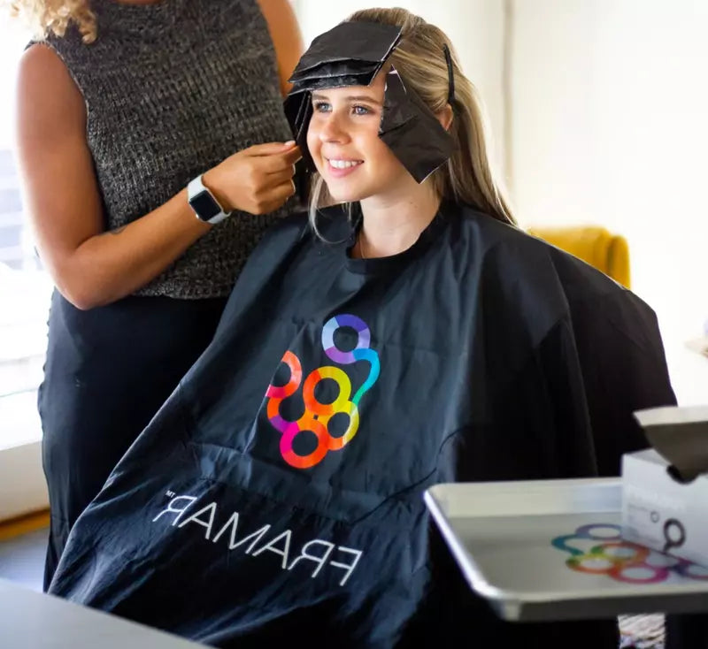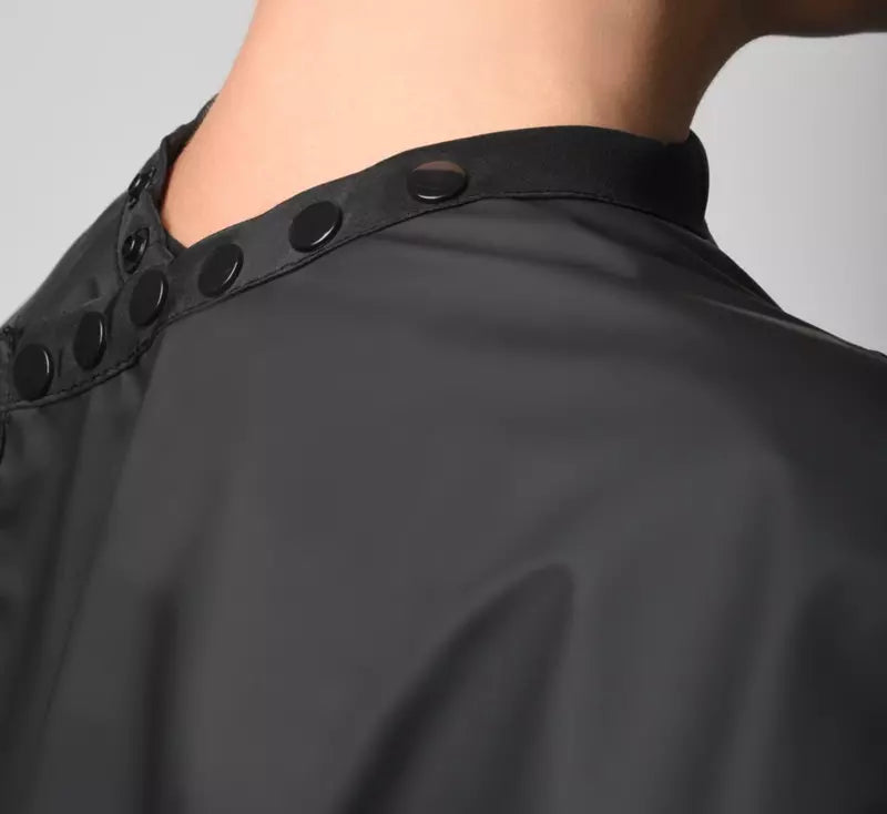 De Framar Color Cover Kapmantel combineert comfort, functionaliteit en een stijlvolle uitstraling voor elke kleurbehandeling. Deze professionele kapmantel is vervaardigd uit ademend nylon dat zowel kleur- als waterafstotend is, zodat je klant schoon en droog blijft tijdens de behandeling. De praktische druksluiting zorgt voor een comfortabele pasvorm voor elk lichaamstype. Uniek zijn de discreet geïntegreerde voorzakken, waarmee klanten eenvoudig hun telefoon kunnen gebruiken of een tijdschrift vasthouden zonder de behandeling te verstoren.