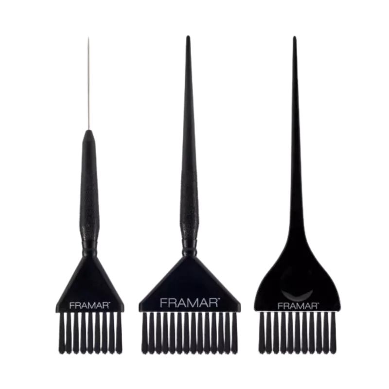 Ontdek de Framar Family Pack Zwart: drie onmisbare kleurkwasten samengebracht in één complete set. De set bevat de Classic Brush, Big Daddy Brush en Detailed Pin-Tail Brush, elk ontworpen voor snel, nauwkeurig en professioneel kleurwerk. Van all-over kleuringen en highlights tot gedetailleerd precisiewerk – je hebt altijd de juiste kwast bij de hand. Alle kwasten zijn voorzien van AccuSoft-haren: een ideale combinatie van zachte en stevige haren voor maximale controle en een gelijkmatige kleurverdeling.
