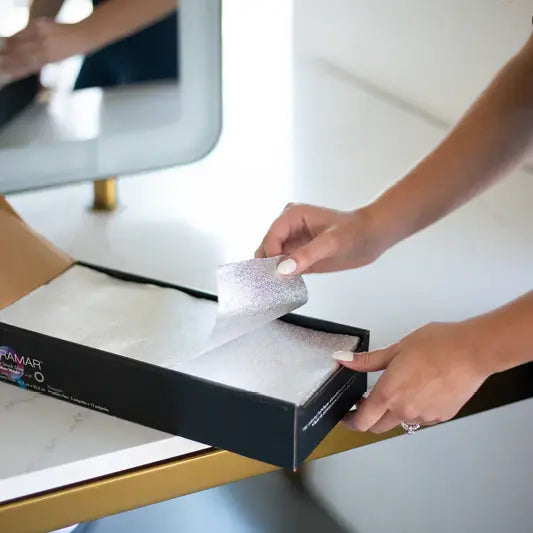 De Framar Pre-Cut Foil Star Struck Silver Medium is ideaal voor snelle en efficiënte kleurbehandelingen. De voorgeknipte folies zijn direct gebruiksklaar, waardoor scheuren en voorbereiden overbodig zijn. Dankzij de doos die fungeert als handige dispenser pak je moeiteloos één vel tegelijk. De geëmbosseerde structuur zorgt voor extra grip en voorkomt wegglijden, zodat je vlot en gecontroleerd kunt werken bij elke kleurtechniek.