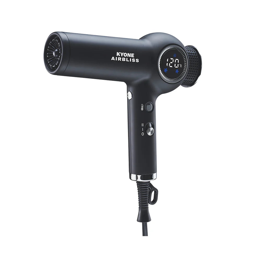 De Airbliss is een echte revolutie in de wereld van föhns en de krachtigste en stilste Kyone föhn. Nu in matzwart met zilveren details. Met een ultralicht gewicht van slechts 340 gram en een fluisterstille werking van maar 80 dB zonder hoge toon is het een must-have en een echte game changer.