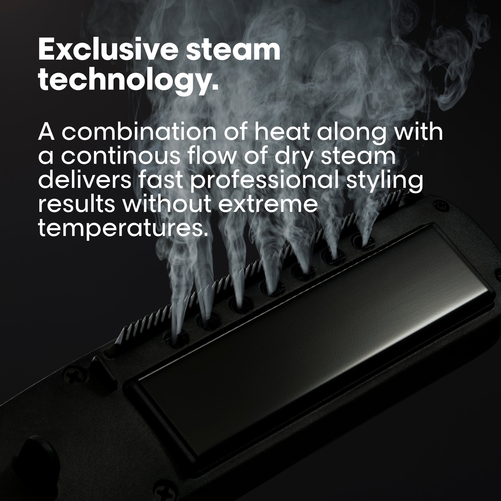 Stoomtechnologie — combineert stoom en warmte om de haarschubben te sluiten en vocht vast te houden, voor gladdere, glanzende lokken.