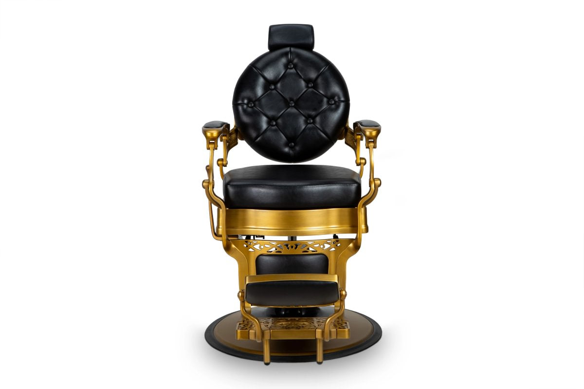 Ronde voet en afdekplaat van satijnglanzend glasvezel, passend bij de rest van de stoel.