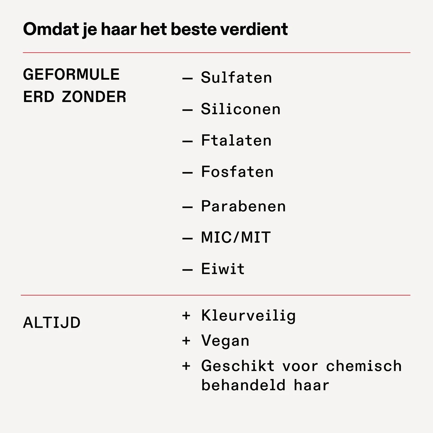 Geschikt voor alle haartypes – vooral droog, breekbaar of chemisch behandeld haar.