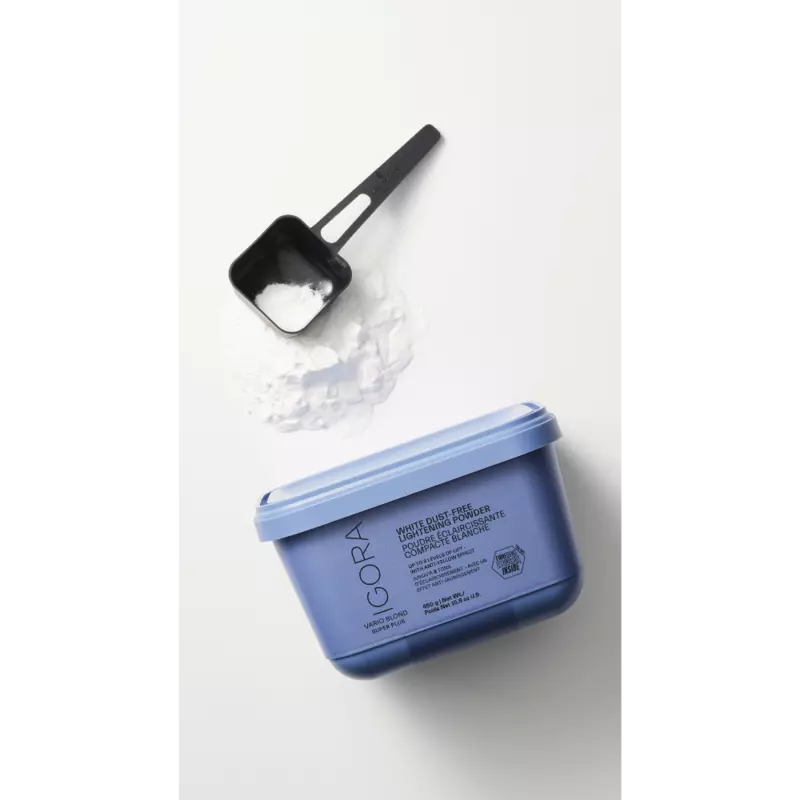 Schwarzkopf Igora Vario Blond Super Plus is een krachtige, stuifvrije blondeerpoeder van 450 g, bedoeld om het haar intensief op te lichten. WITTE POEDER